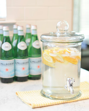 When I'm out and about, I always carry a water bottle to keep hydrated. I live in the South and it's so hot and humid, I never want to be without water when I'm thirty. Recently, at home, I made some "spa" water, aka, water with fruit cut up in it and served up in a fancy container:) I found this glass jug at Target for $19.99.